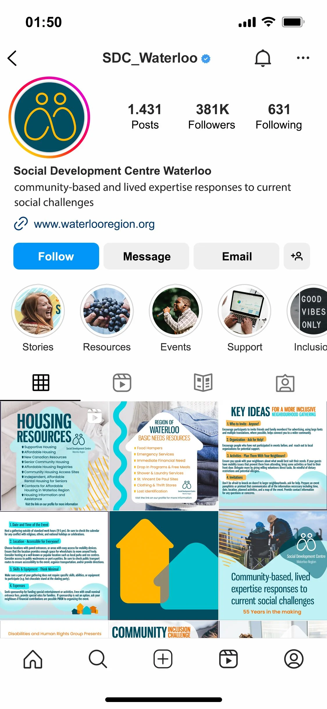 The Social Development Centre of Waterloo Region is an organization focused around social development issues in the region, including housing, income disparity and community development. While the organization is a strong presence and provider of resources, they struggle with a consistent message and brand identity across platforms.