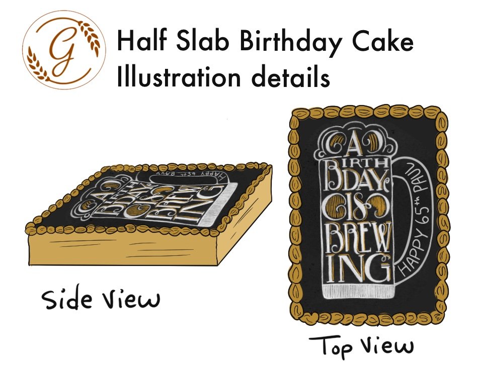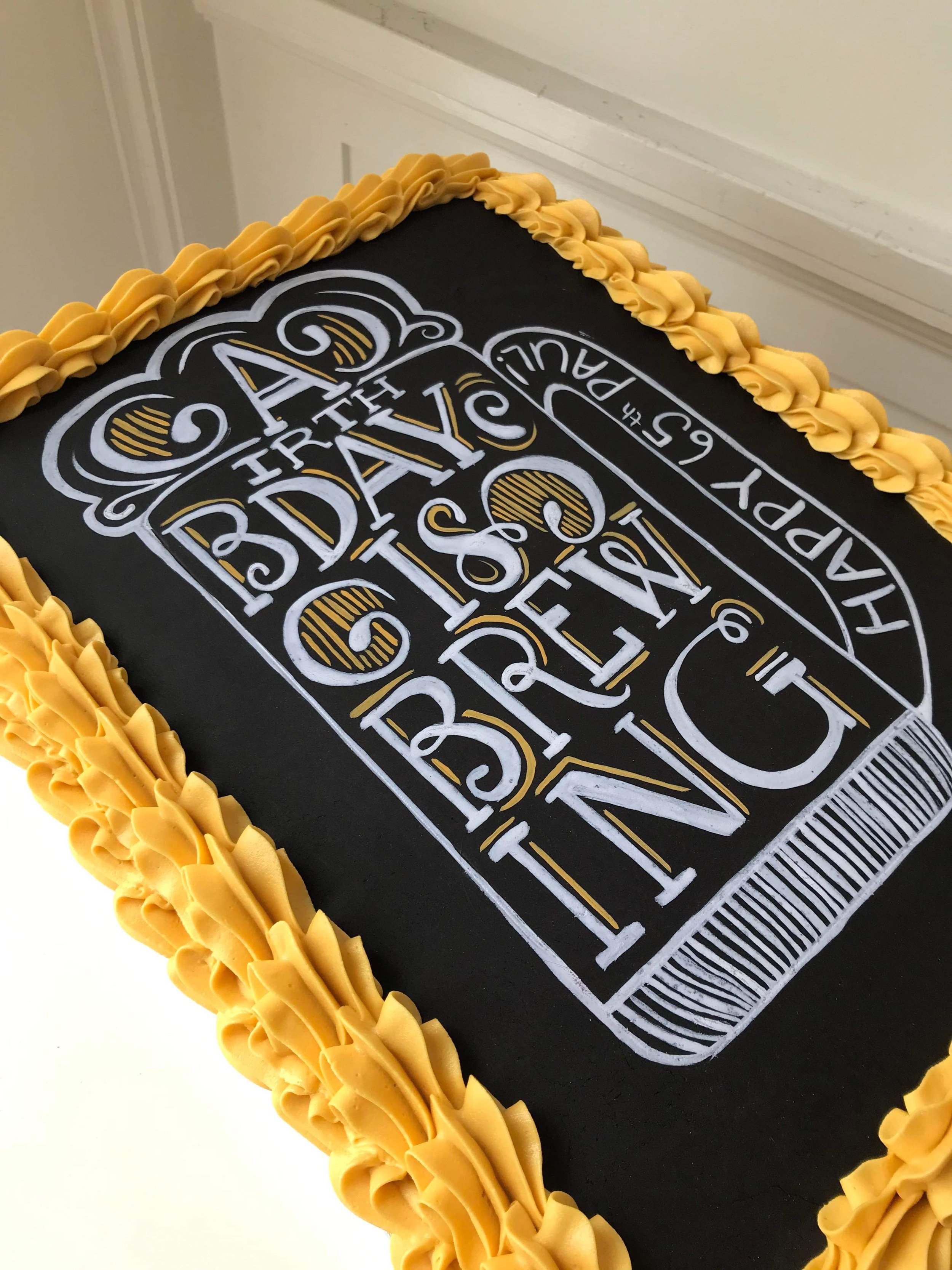 A Birthday is Brewing hand Painted 1/2 Slab Cake