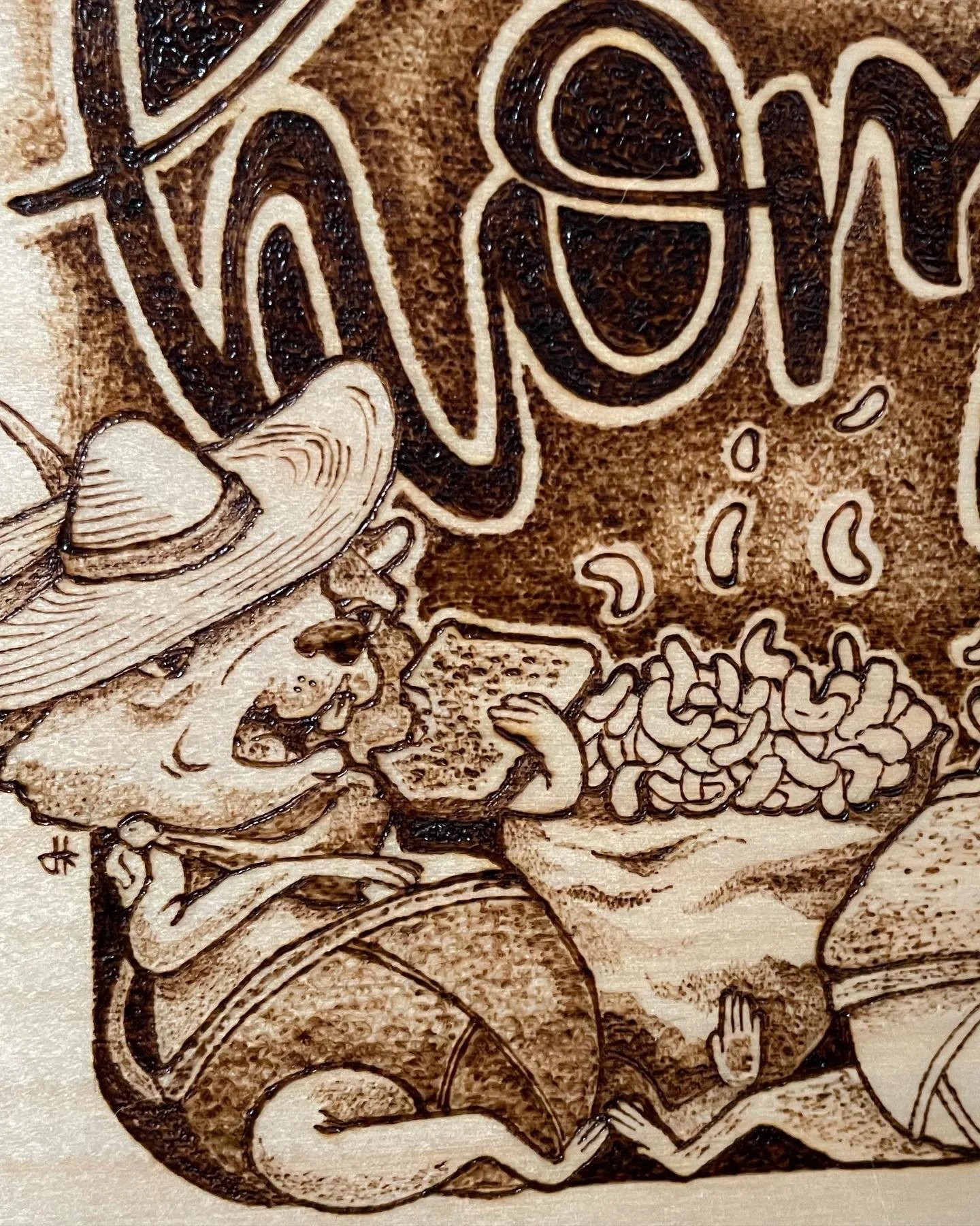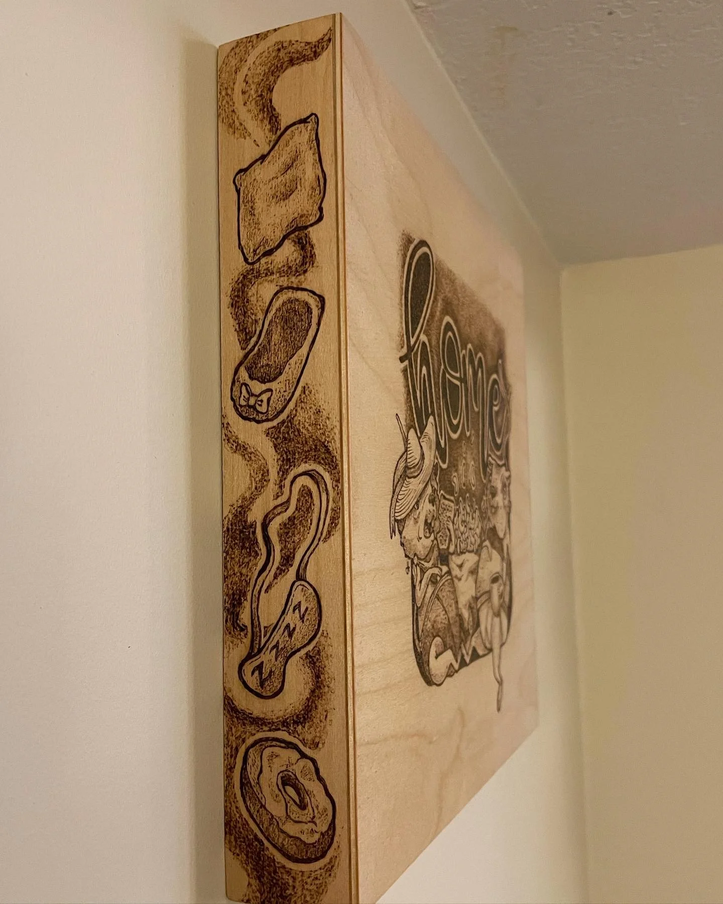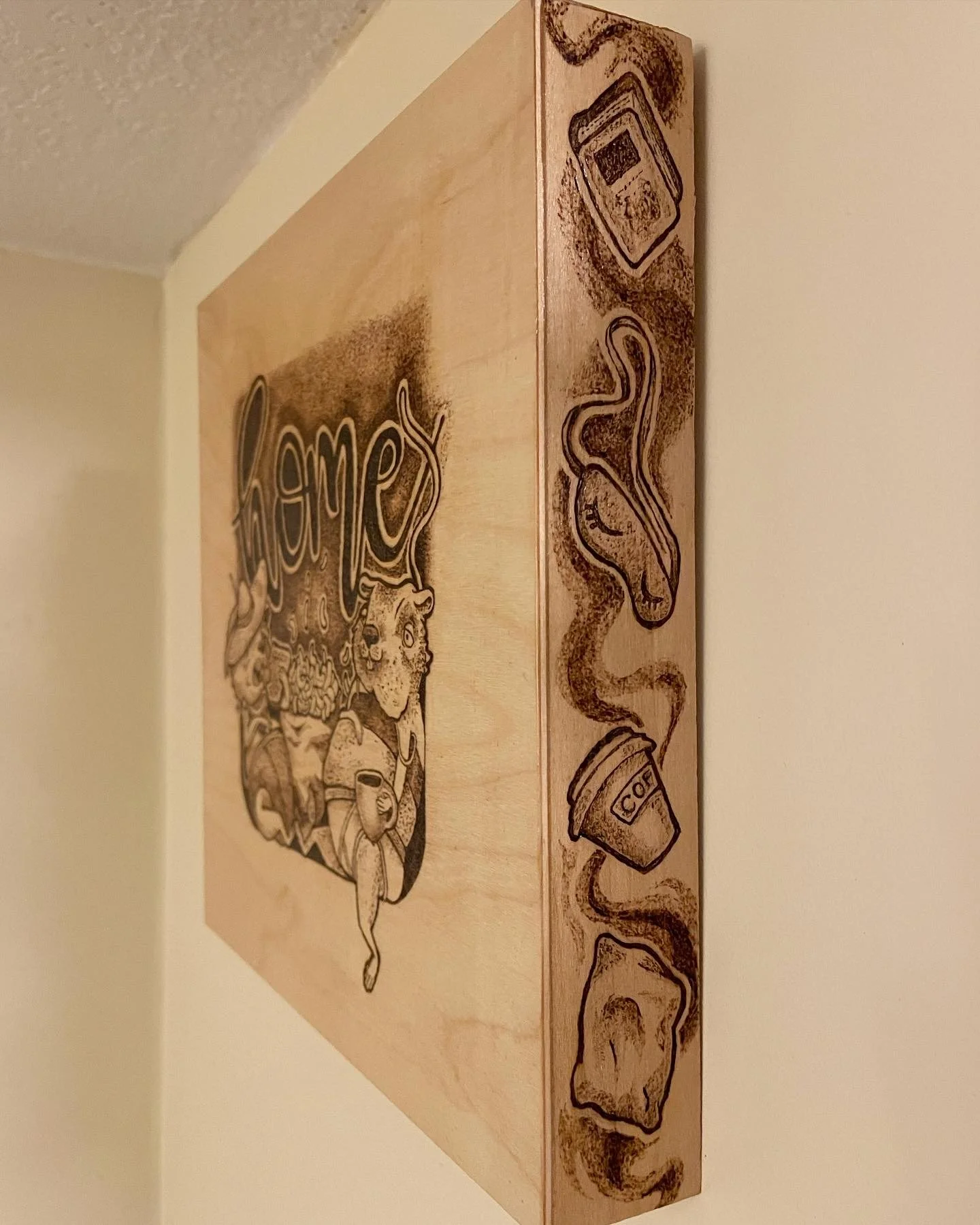 From custom to personal passion projects, and exclusive wood burnings to multimedia pieces. All the designs shared below are 100% original and mostly freehanded.